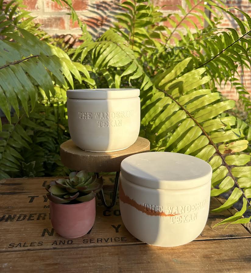 * Due to the nature of hand-mixed and hand-poured cement materials, it is natural for infused air bubbles to appear in the container surface. Similarly, colors and patterns will vary by individual candle.